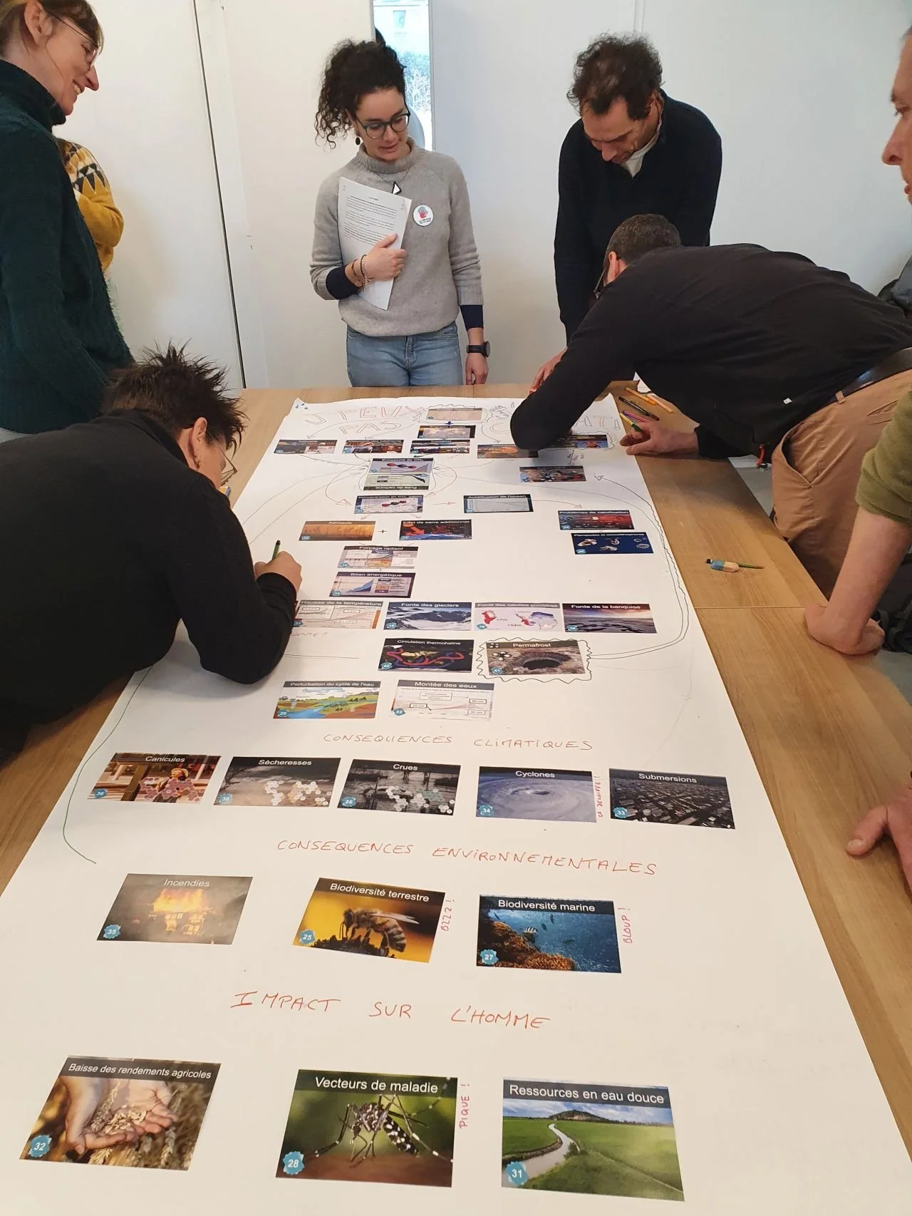 La Fresque du climat est un atelier scientifique, coopératif et mobilisateur de 3 à 4 heures pour comprendre les causes et effets des changements climatiques, basé sur un jeu de 42 cartes issues des rapports du GIEC.